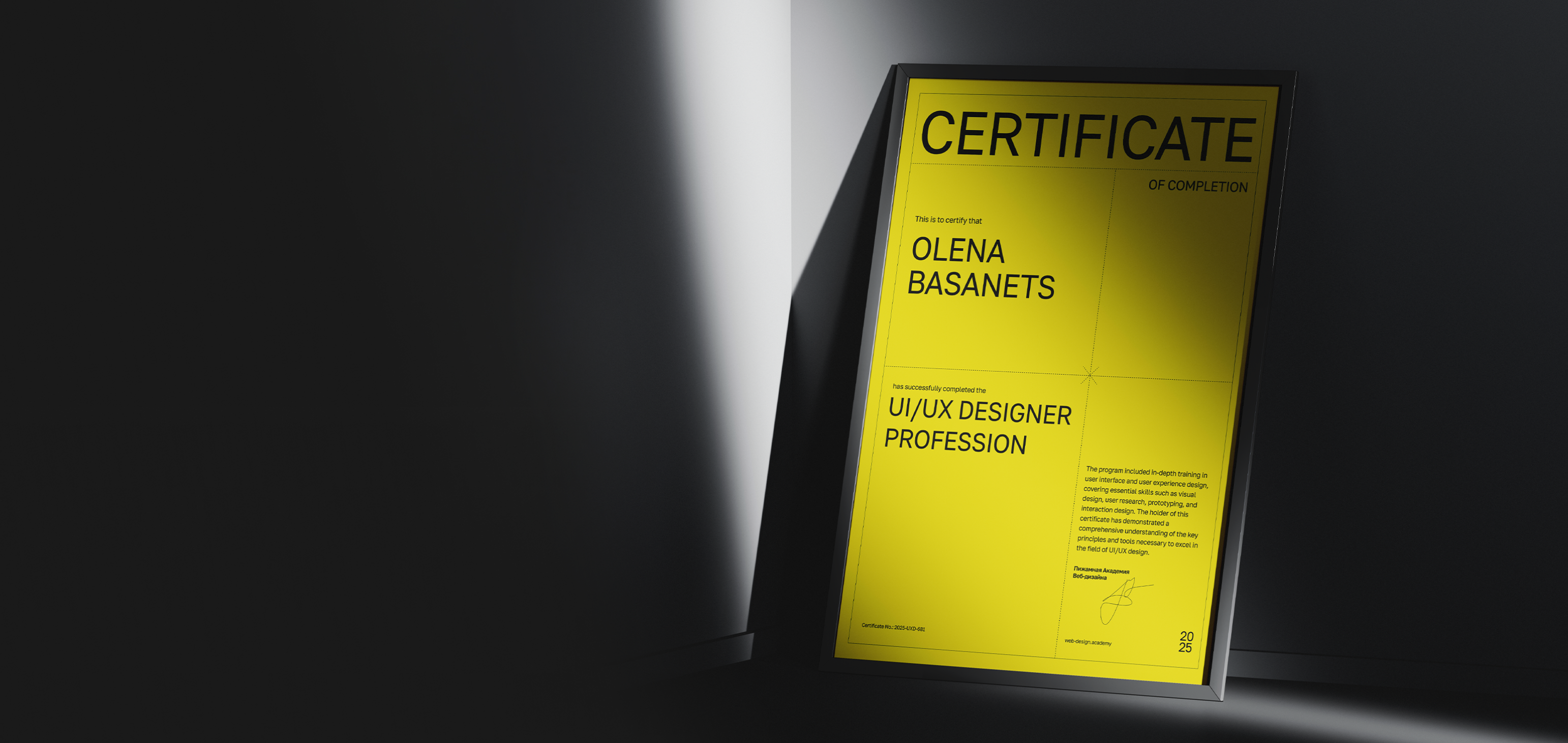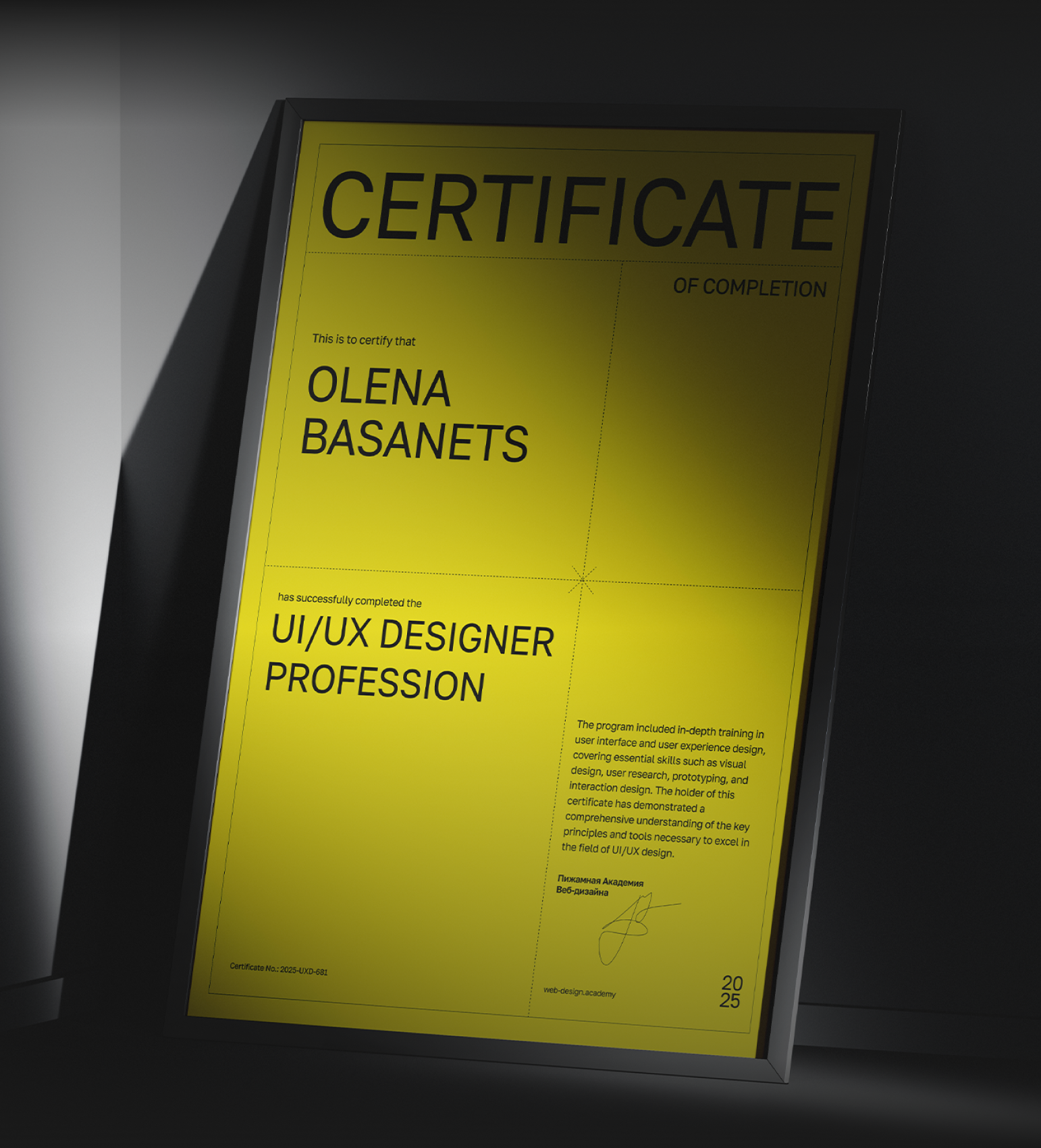 Сертификат за успешное окончание обучения