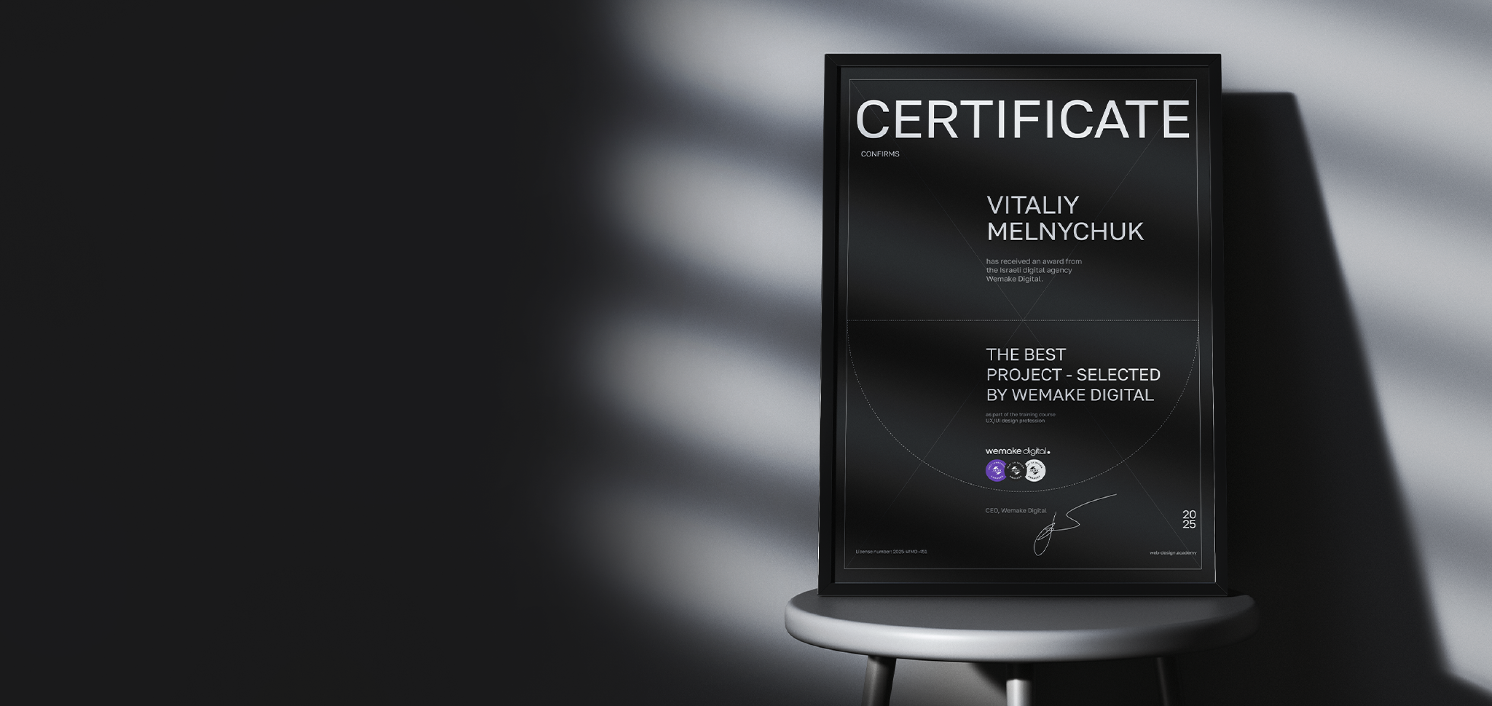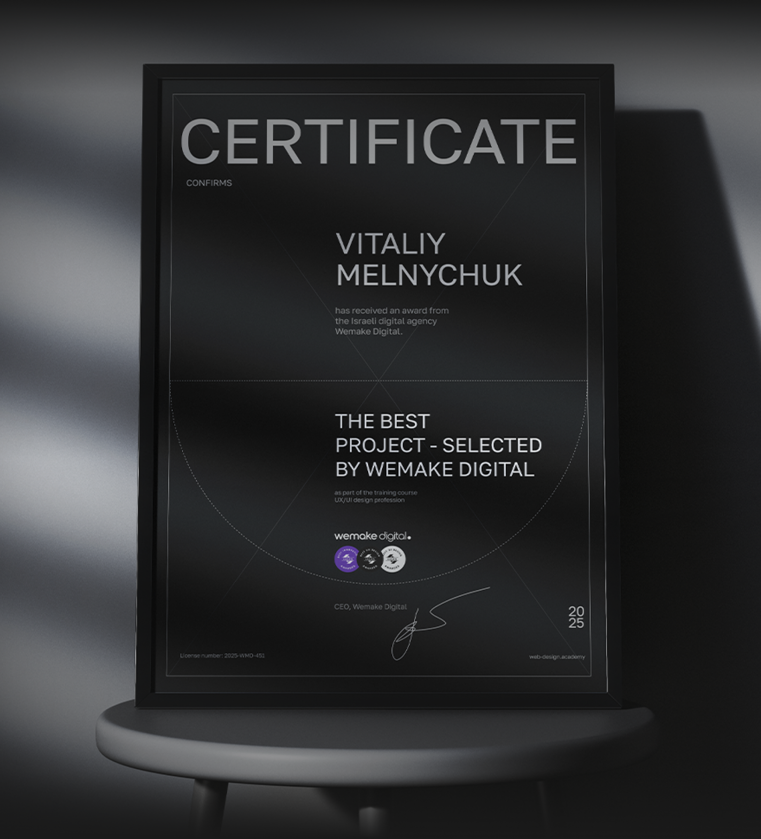 Cертификат за лучший проект от Wemake Digital