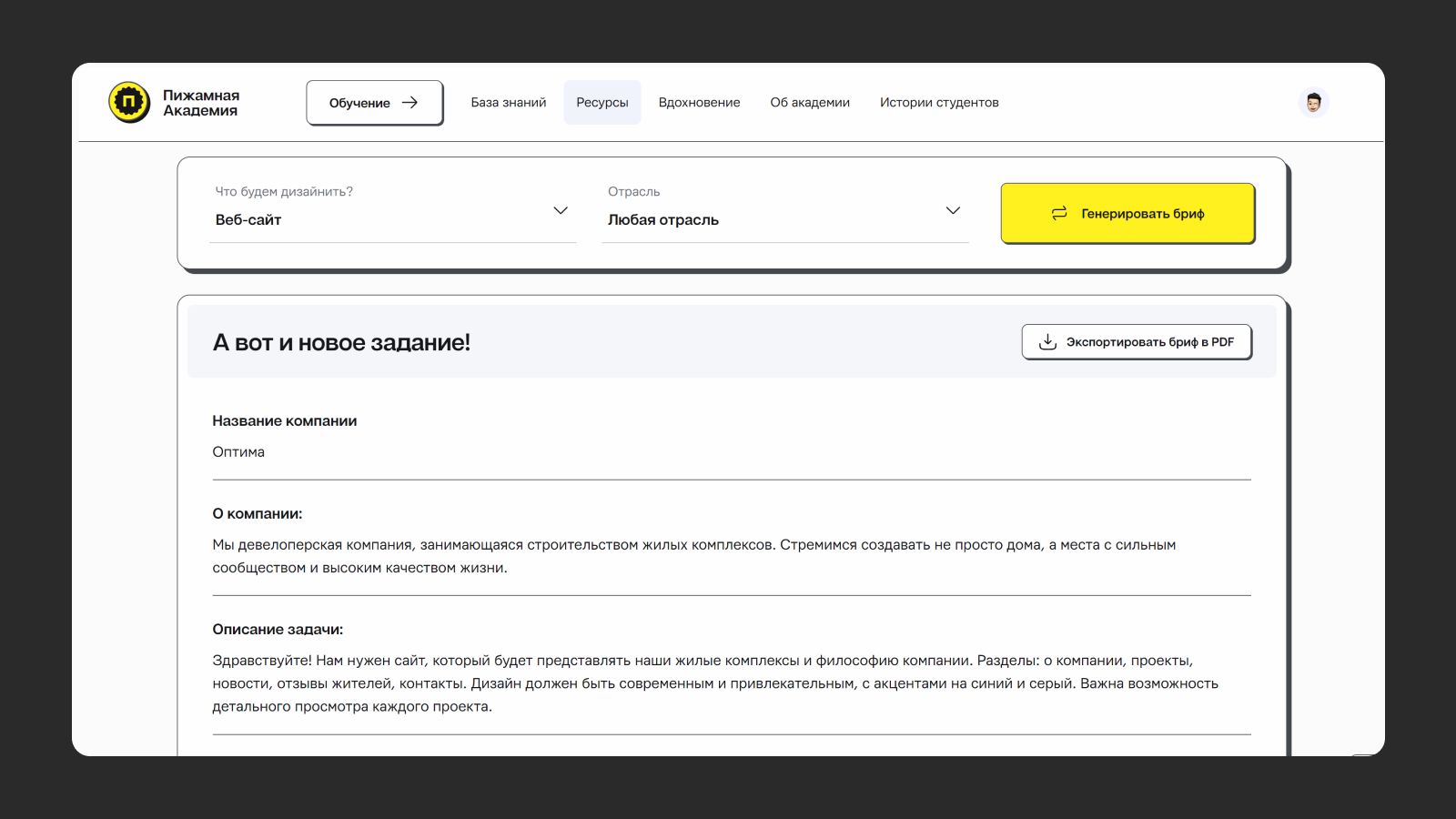 Наш генератор брифов поможет с новыми идеями для твоих проектов
