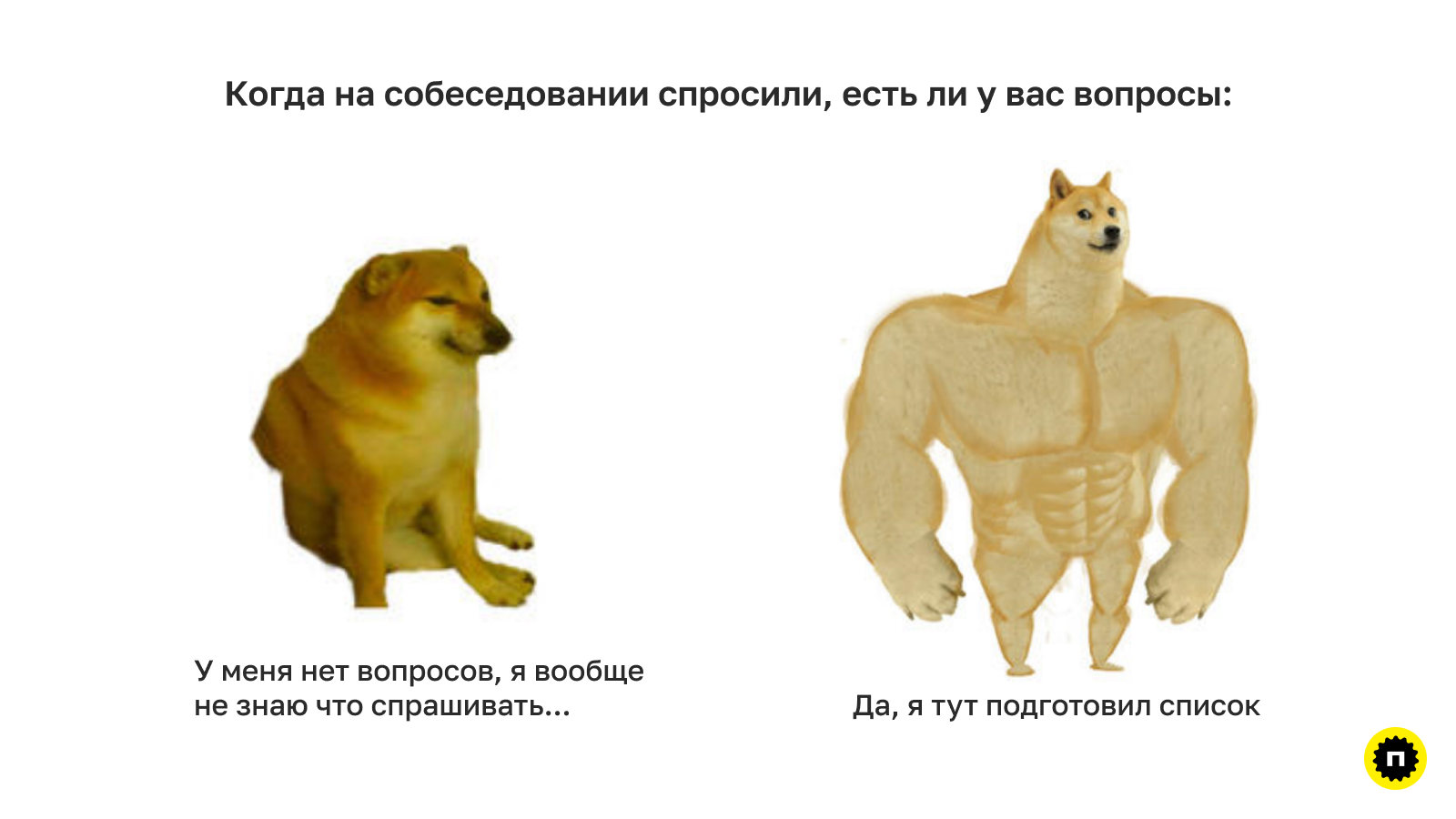 Будьте открыты к диалогу, не закрывайтесь и настройтесь на френдли вайб. Если вы на собеседовании, значит, вы сделали правильно два пункта выше, и с вами хотят общаться. Вылазьте из ракушки — люди любят инициативных, общительных и интересующихся людей.