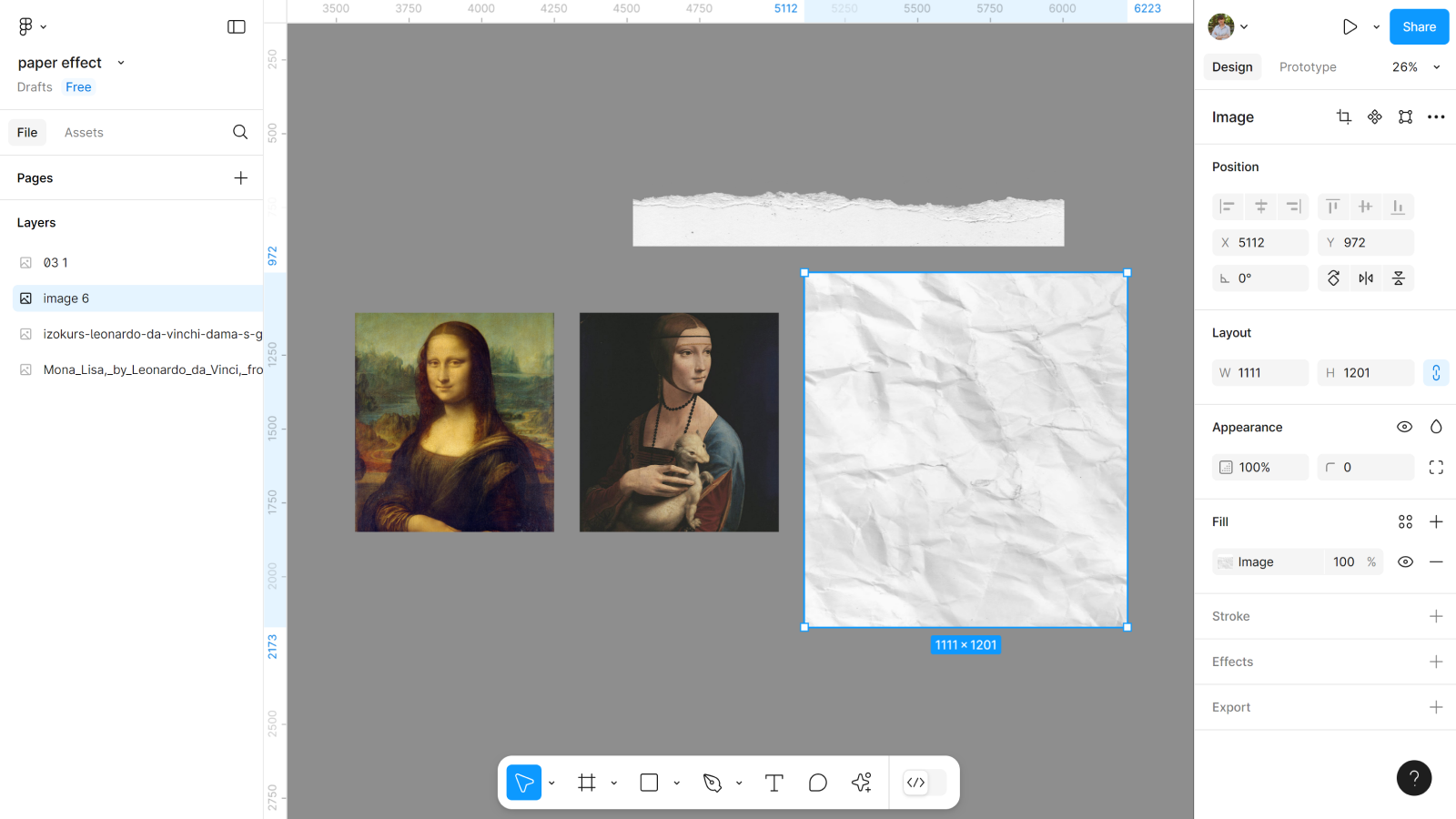 Теперь мы будем работать с экспортированным изображением рваной бумаги и нашими фото картин.